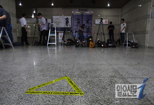 [일요신문] 비리혐의 등 혐의를 받고 있는 여야 현역의원들의 영장실질심사가 열리는 21일 오전 서울 서초구 서초동 서울중앙지방법원에서 포토라인이 설치돼있다. 검찰은 실질심사에 불출석한 새누리당 박상은(정치자금법 위반 등의 혐의), 조현룡 의원(철도비리 연루 의혹)과 입법로비 의혹을 받고 있는 새정치민주연합 신계륜, 김재윤, 신학용 의원 등에 대해 강제구인하기로 결정했다.