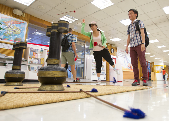 베트남 학생들이 한국관광공사 안내전시관에서 투호를 즐기고 있다.
