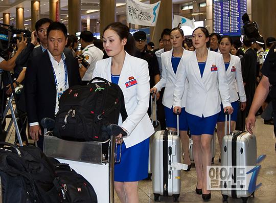[일요신문] 2014 인천아시아경기대회에 참가하는 북한 선수단 본진(2진) 87명이 16일 오후 평양에서 서해 직항로를 거쳐 인천공항을 통해 입국하고 있다.