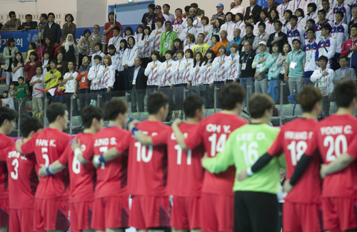 [일요신문] 2014 인천아시아경기대회 남자핸드볼 결승전이 열리는 2일 인천 선학핸드볼경기장에 핸드볼 여자대표팀 선수들이 응원을 위해 경기장을 찾아왔다. 여자핸드볼 대표팀은 전날 금메달을 목에 걸었다.