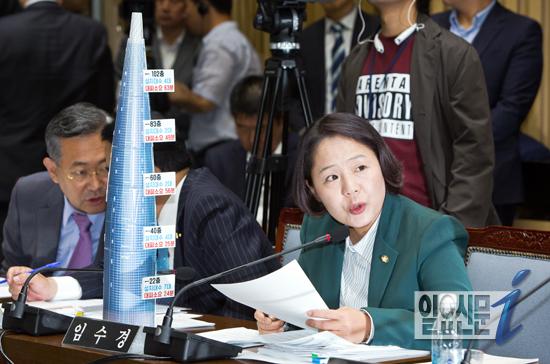 [일요신문] 14일 오전 서울시청에서 열린 국회 안전행정위원회의 서울시에 대한 국정감사에서 새정치민주연합 임수경 의원이 박원순 서울시장에게 제2롯데월드 저층부 임시개장 적절성을 지적하는 질의를 하고 있다. / 최준필 기자 choijp85@ilyo.co.kr