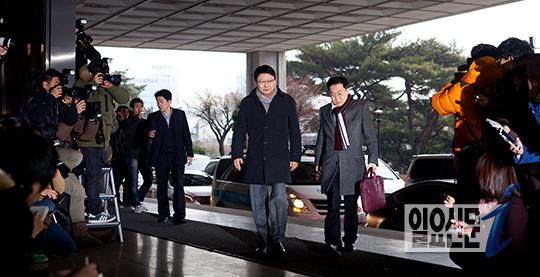 [일요신문] 정윤회 국정개입 문건 유출과 관련해 박지만 EG회장이 15일 오후 참고인 신분으로 검찰 조사를 받기 위해 서초동 서울중앙지검에 출석하고 있다.