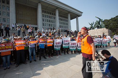 [일요신문] 여야가 합의한 공무원연금개혁 최종 협상시한을 하루 앞둔 1일 오후 전국공무원노조(전공노) 소속 노조원들이 서울 여의도 국회 본관 앞에서 기습시위를 벌이고 있다. 전국공무원노조는 "공무원들의 희생만 강요하는 공무원연금개혁에 반대한다"며, "연금개악 결사반대" 를 구호로 외치며 국회의사당 앞 계단을점거하고 있다.