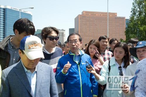 [일요신문] 서울시는 작년에 이어 서울역 앞 고가에 잔디를 깔고 10일 오전 11시 부터 오후 3시까지 시민들에게 고가를 개방하였다. 박원순 시장이 뉴욕의 폐(廢) 고가철로를 활용한 공원인 하이라인 파크(High Line Park)를 모델로 삼아 공원화 하기로 한 배경과 남대문시장 상인들의 반발에 대한 대책등에 대해 설명하고 있다.