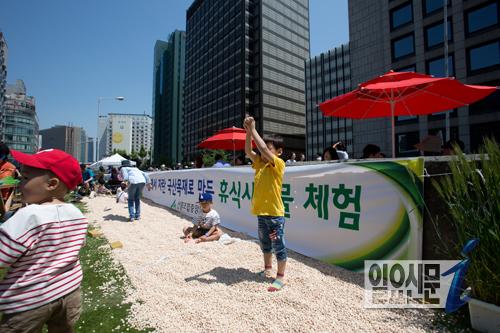 [일요신문] 서울시는 작년에 이어 서울역 앞 고가에 잔디를 깔고 10일 오전 11시 부터 오후 3시까지 시민들에게 고가를 개방하였다. 아이들이 도심속 공원 목재 체험공간에서 나무를 이용해 놀이하며 즐기고 있다.