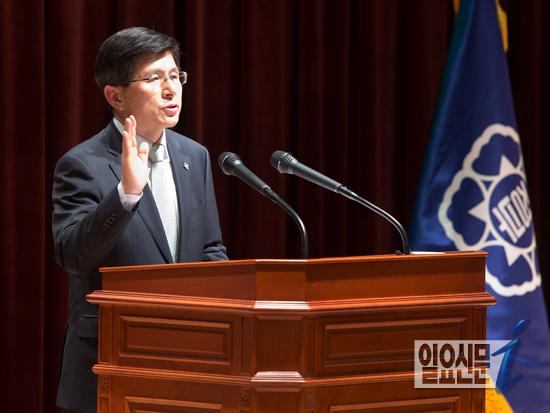 황교안 신임 국무총리가 18일 오후 서울 세종로 정부서울청사 별관에서 열린 취임식에서 취임선서를 하고 있다.