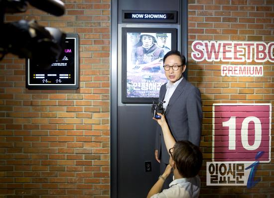 이명박 전 대통령이 25일 오후 서울 강남구 신사동 CGV청담씨네시티에서 영화 '연평해전'을 관람하기 전, 방송기자와 인터뷰를 하고 있다. 이명박 전 대통령은 "나라를 위해 목숨을 바친 것 보다 더 큰 애국심은 없다. 애국심은 가장 높은 가치로 평가 받아야 한다"고 말했다.