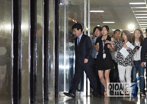 [일요신문] 29일 오전 2차연평해전 기념식과 연관하여 평택에서 개최한 새누리당 최고위원회의에 친박계 최고위원들이 불참하여 부랴부랴 국회 당대표실에서 개최하는 긴급최고위원에 참석하려고 오던 유승민 원내대표가 쫒아오는 여기자들을 뿌리치고 화장실로 달려가고 있다.