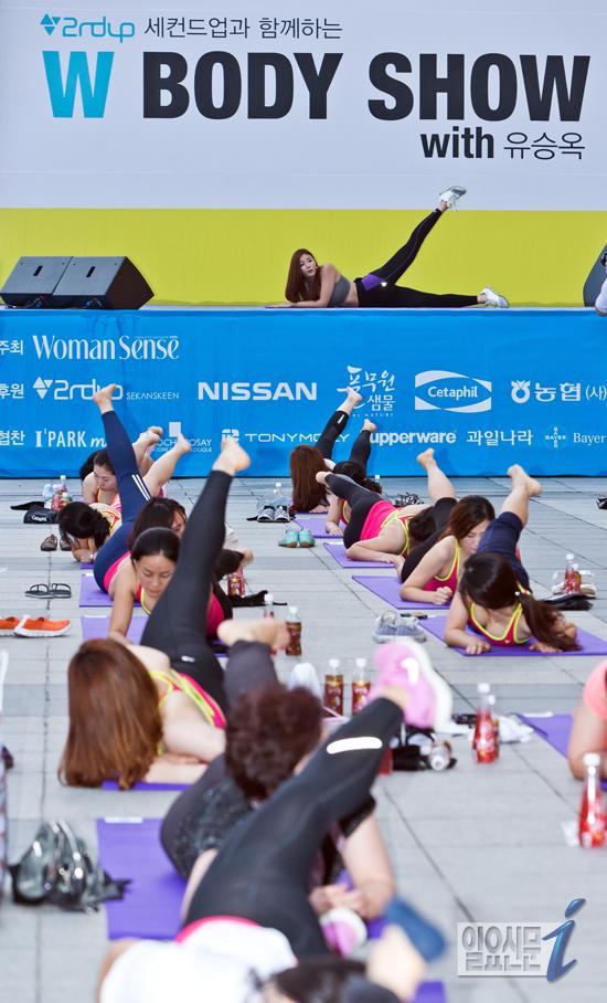 [일요신문] 우먼센스 창간 27주년과 세컨드업 론칭을 기념해 개최되는 'W BODY SHOW'가 15일 오후 서울 용산구 아이파크몰 1층 광장에서 열린 가운데, 모델 겸 방송인 유승옥이 발레이션 클래스 트레이닝을 참가자들과 함께 진행하고 있다. / 최준필 기자 choijp85@ilyo.co.kr