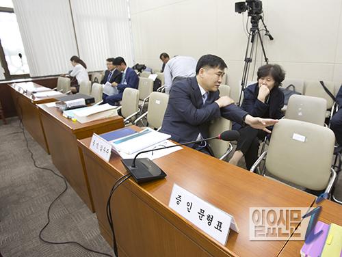 [일요신문] 21일 오전 국회 보건복지위(이하 보건위)의 보건복지부(질병관리본부 포함) 국정감사가 증인으로 채택된 문형표 전 보건복지부장관이 사전에 아무런 통보없이 불출석함으로써 증인추가출석요구안을 낼지 말지 여야간 협의하기 위해 정회되었다. 증인들만 남기고 여야의원들 모두가 퇴장하여 텅비어있다.