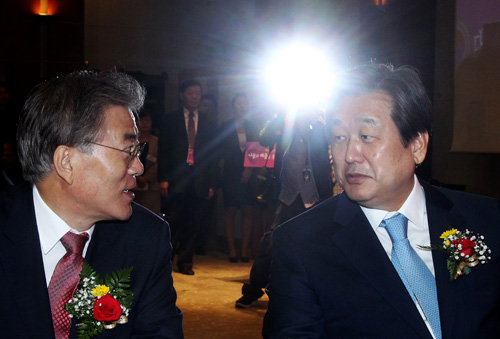 나란히 앉은 김무성, 문재인 대표
