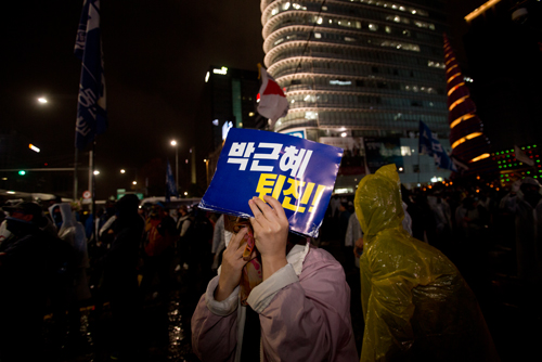 [일요신문] 14일 오후 서울 광화문에서 노동·농민·시민사회단체로 이뤄진 '민중총궐기 투쟁본부' 주최로 열린 정부 규탄 '민중총궐기 투쟁대회'에서 참가자들이 행진하던 중 경찰과 대치하고 있다.