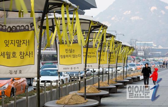 2015년 마지막 날인 31일 오후 광화문 세월호광장에 노란 리본이 바람에 날리고 있다. 사진/임준선기자