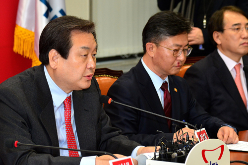 [일요신문] 김무성 새누리당 대표가 12일 서울 여의도 국회에서 열린 개성공단 폐쇄 관련 개성공단기업협회 간담회에서 정기섭 개성공단기업협회장을 비롯한 기업인들과 마주앉아 인사말을 하고 있다.