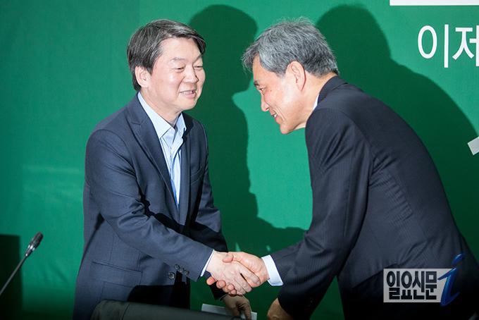 안철수-김성식 꽃목걸이 걸고 포옹