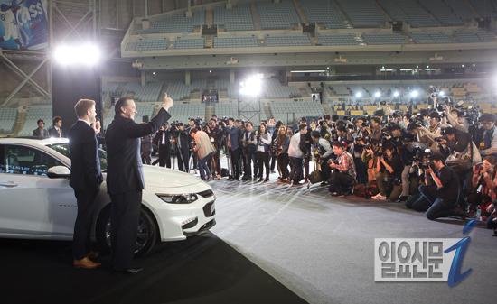 27일 오전 서울 고척 스카이돔에서 쉐보레의 신형 중형 세단 올 뉴 말리부가 공개되고 있다.