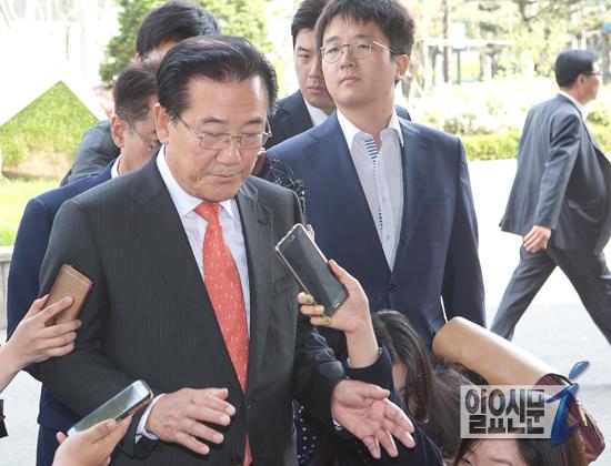 2일 오전 서울남부지방검찰청으로 출석하여 기자들의 질문을 받고 있다. 사진/임준선기자